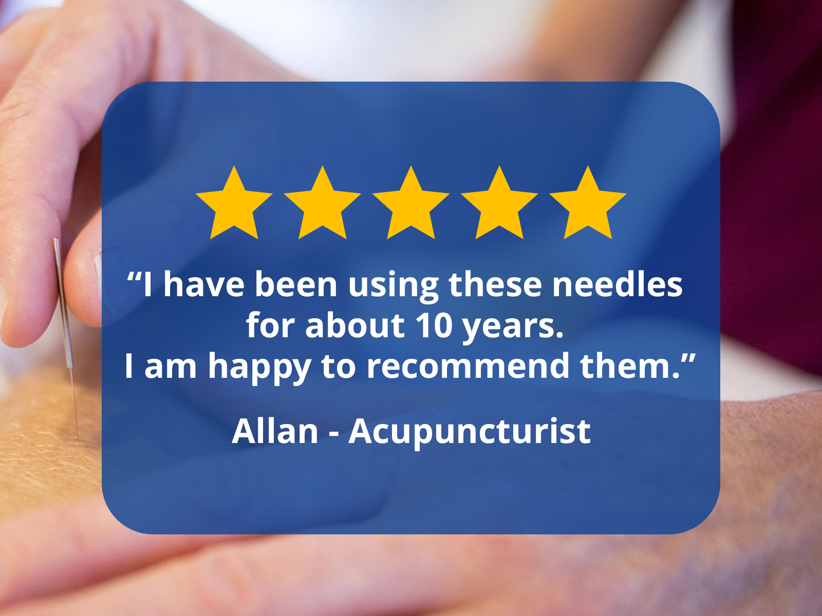 Fantastic prompt delivery of my essential needles, very impressed with the packaging and the delivery method, as well as the very high-quality needles I need to have for my wonderful craft of acupuncture. Very impressed, will be using it again,