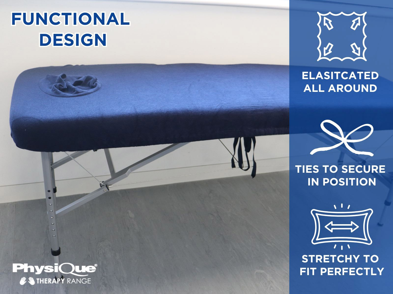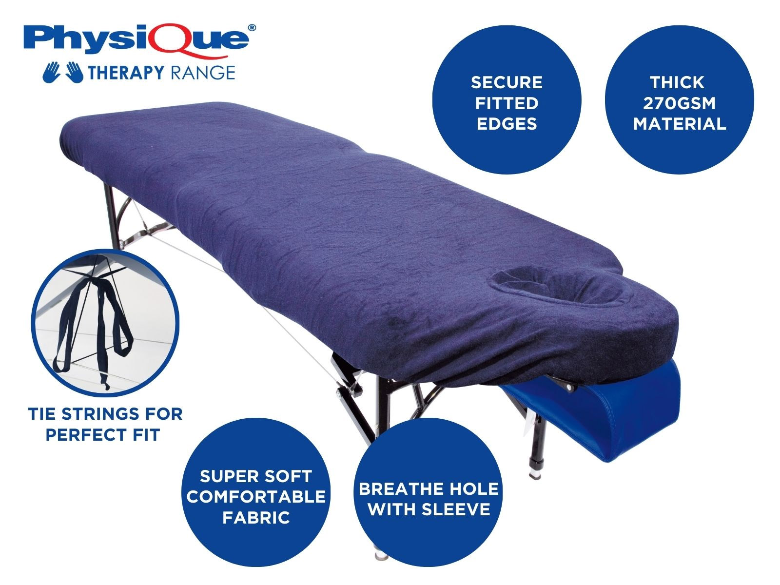 The PHYSIQUE Massage Table Couch Cover is designed to provide a secure, professional finish while enhancing client comfort and protecting your massage table or treatment bed. Ideal for use in treatment rooms, clinics, spas, salons and home therapy setups, this cover delivers durability, hygiene, and a premium look in one essential accessory.