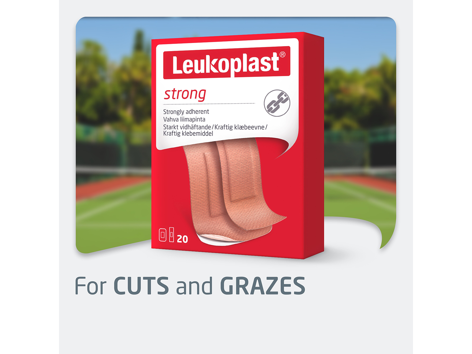 Leukoplast strong has a secure hold, ideal for the active individual. Work or play, at home or in the garden, the strong adhesive stays in place offering a secure fit.