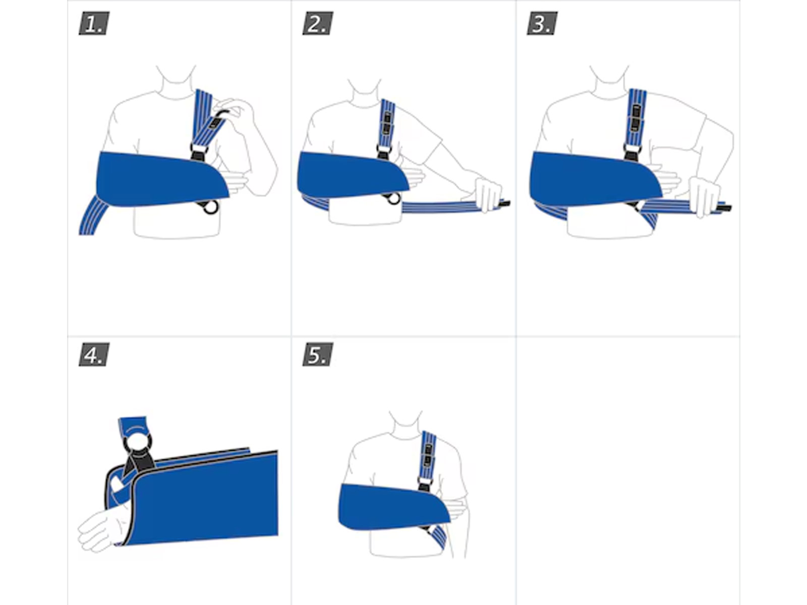 Helps relieve pain by immobilising the shoulder. The breathable materials and adjustable straps make it a comfortable fit. It comes in a universal size, and it's easy to wear, adjust, and remove. It's suitable for: