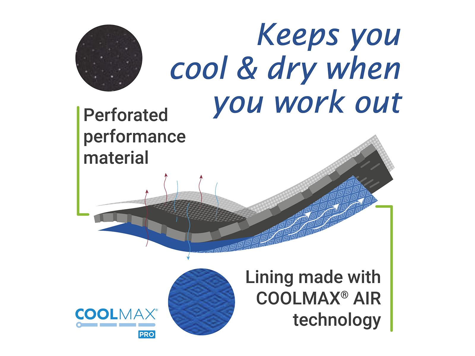 - Neoprene-free, made with COOLMAX® AIR technology