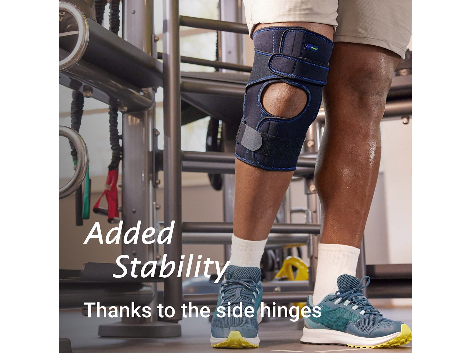 - Manage knee pain from soft tissue, ligament injuries or osteoarthritis through extra stability from medial and lateral hinges.