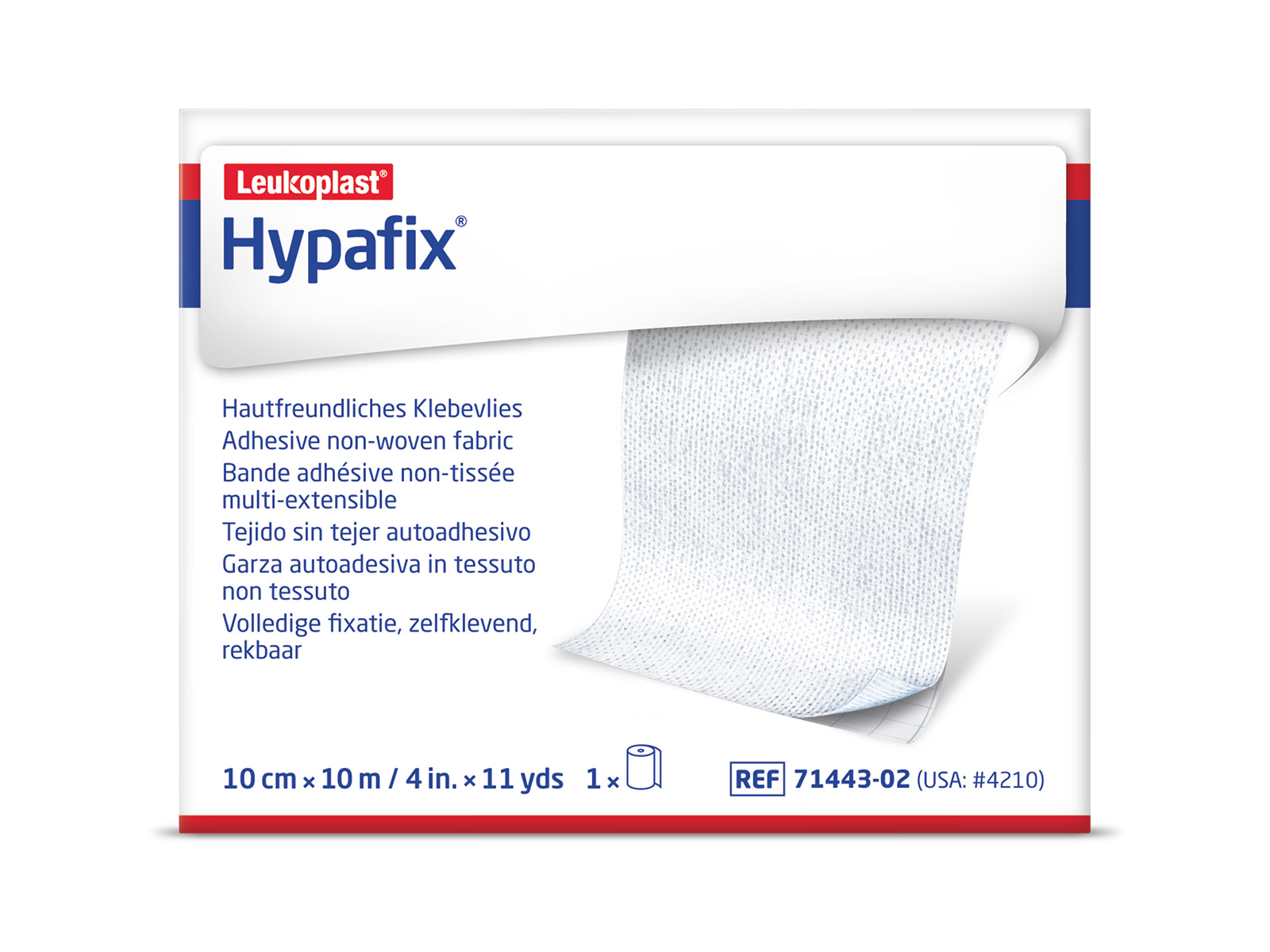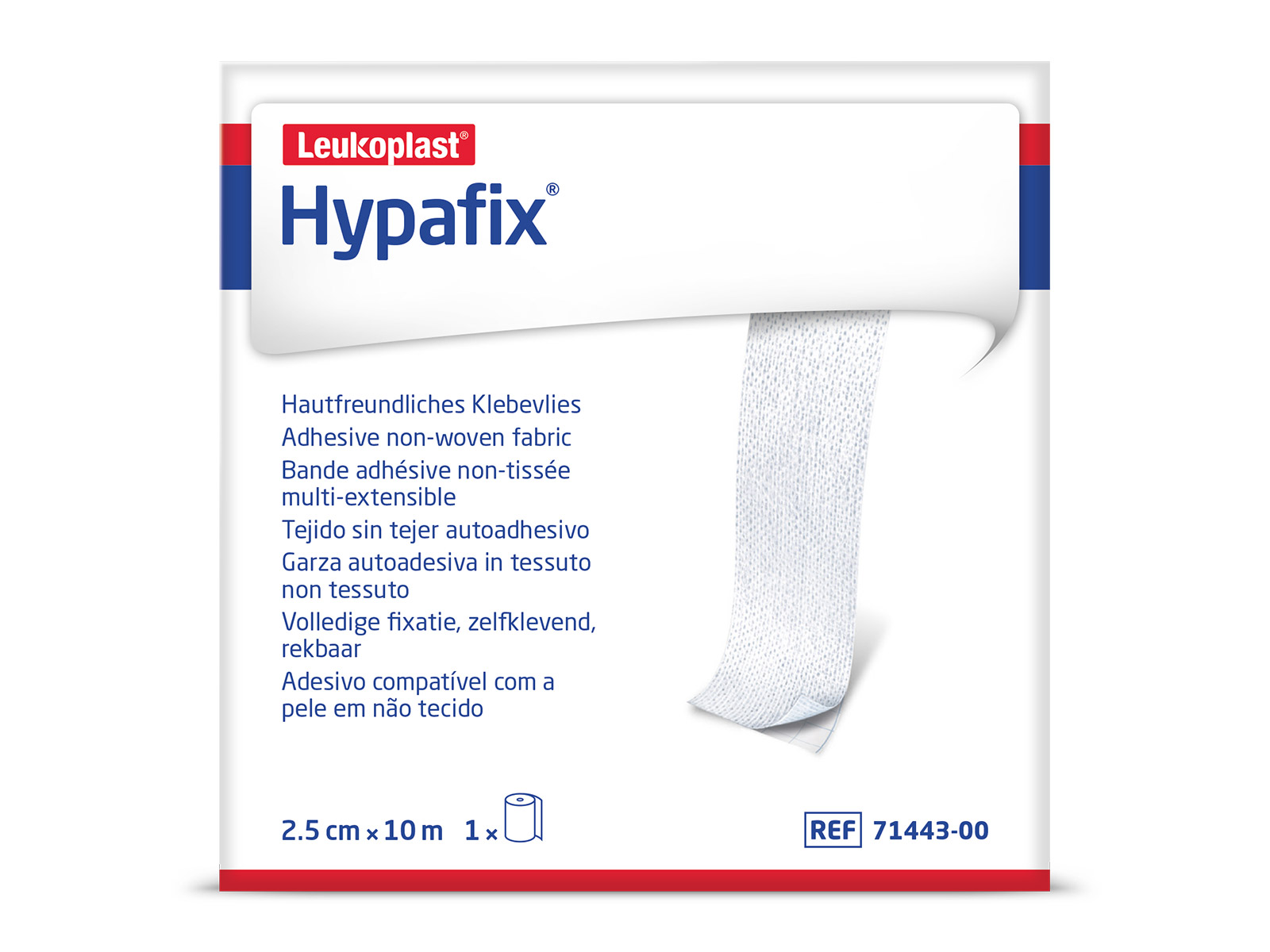 - Hypafix is a skin-friendly, non-woven tape used for wide area dressing fixation. The tape transversely stretches, is highly conformable and easy to apply, even on difficult joint areas. It is easily cut to shape to suit patients treatment requirements.